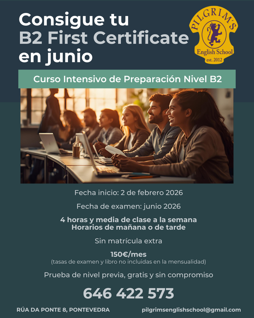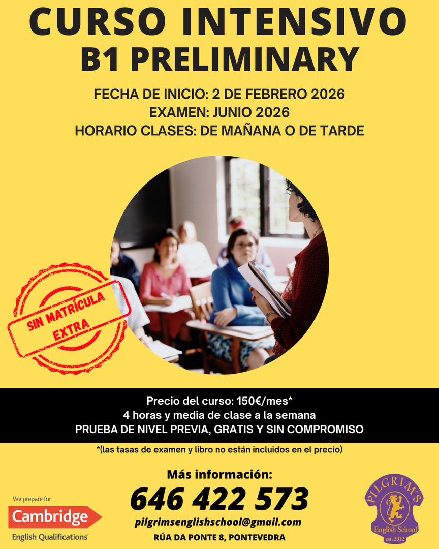 Pilgrim’s English School es una escuela situada en el casco antiguo de Pontevedra, desde 2012, dedicada a la enseñanza de la lengua inglesa tanto para niños como adultos.