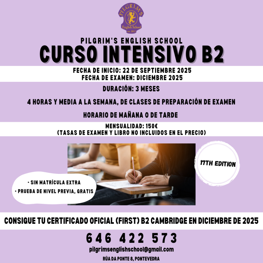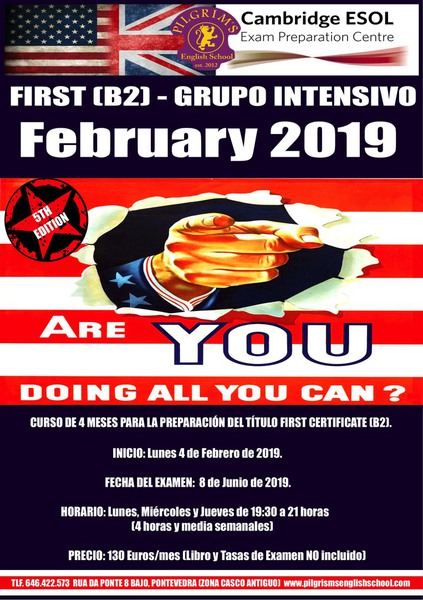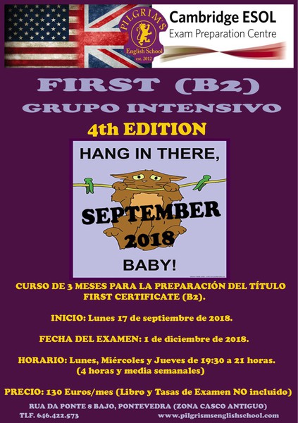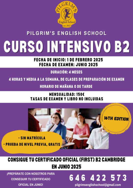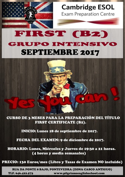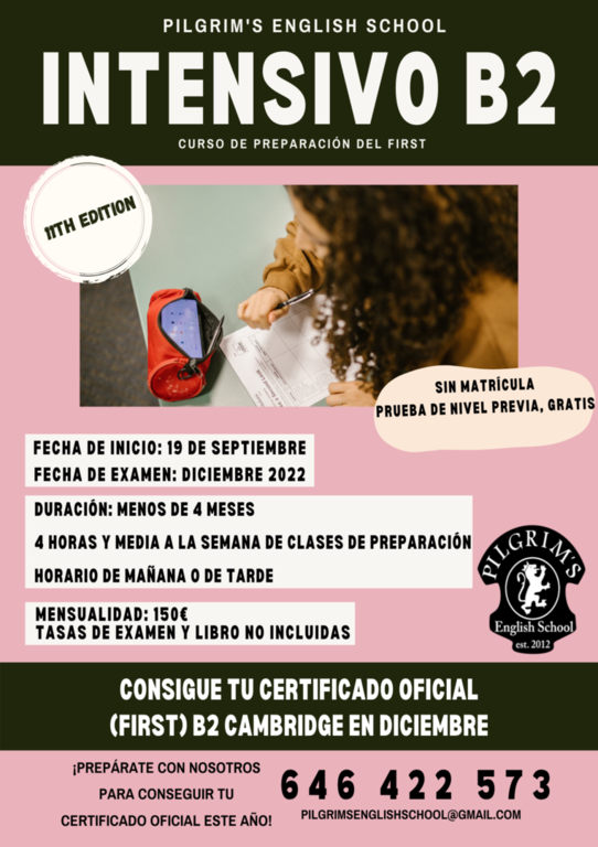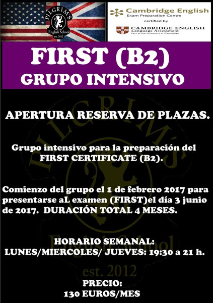 Este grupo está pensado para poder examinarse una vez finalizado, teniendo la opción de presentaros a examen oficial de Cambridge en un centro examinador oficial.