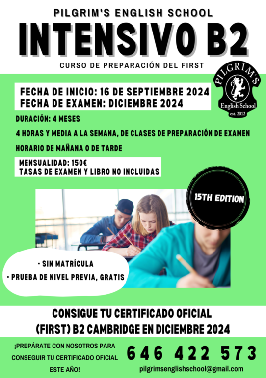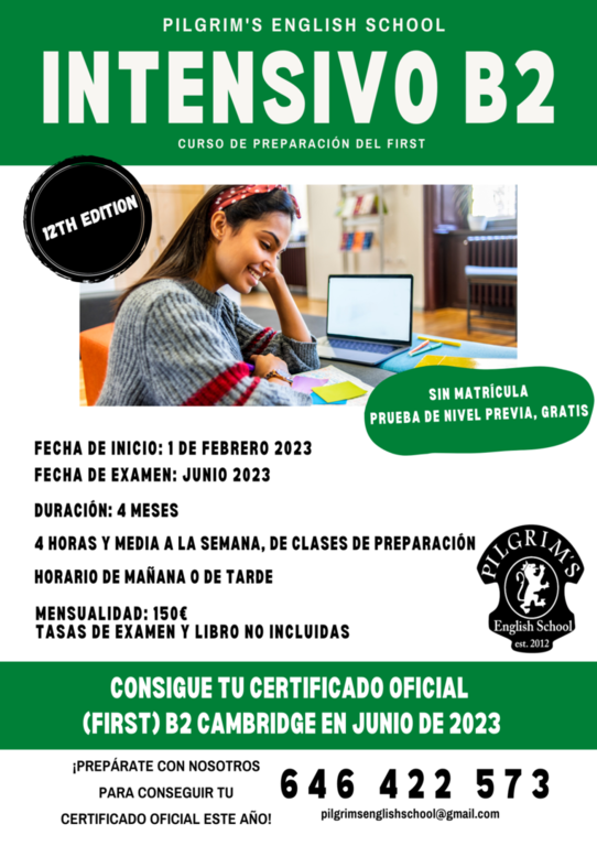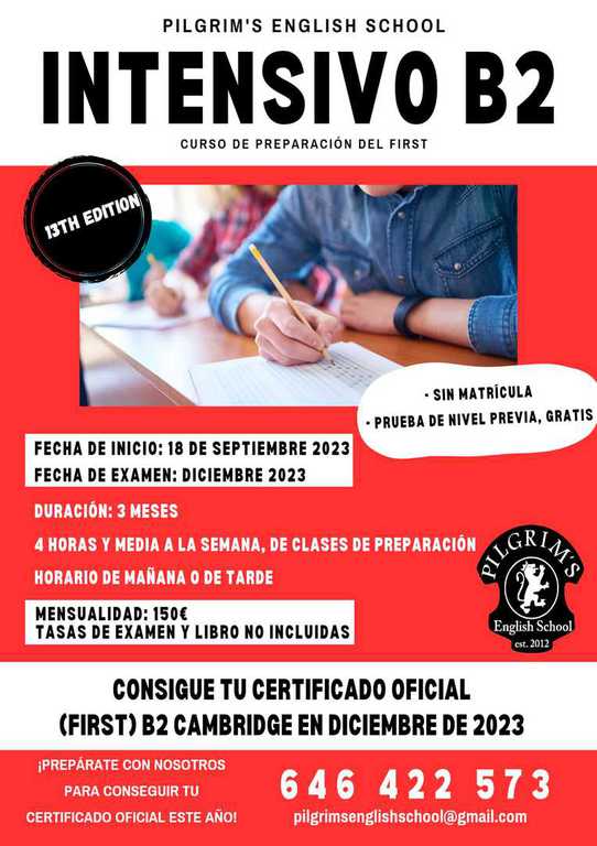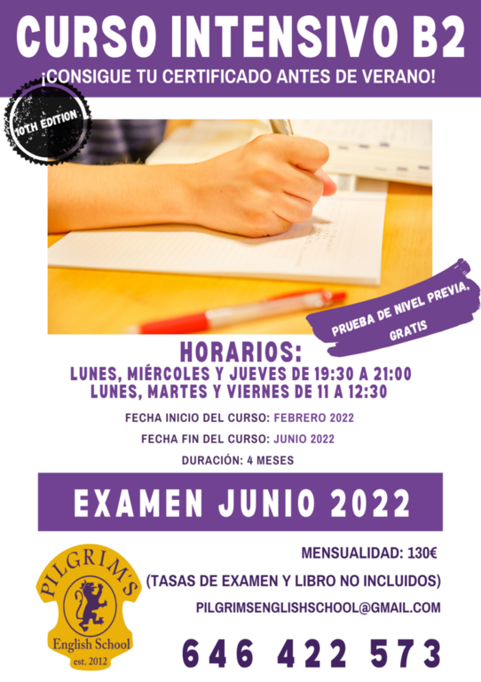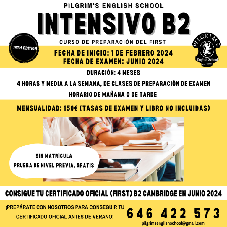 El grupo de B2 intensivo se trata de un grupo de 4h 30min, a la semana, repartidas en 3 días a la semana, en horario de mañana o de tarde.
